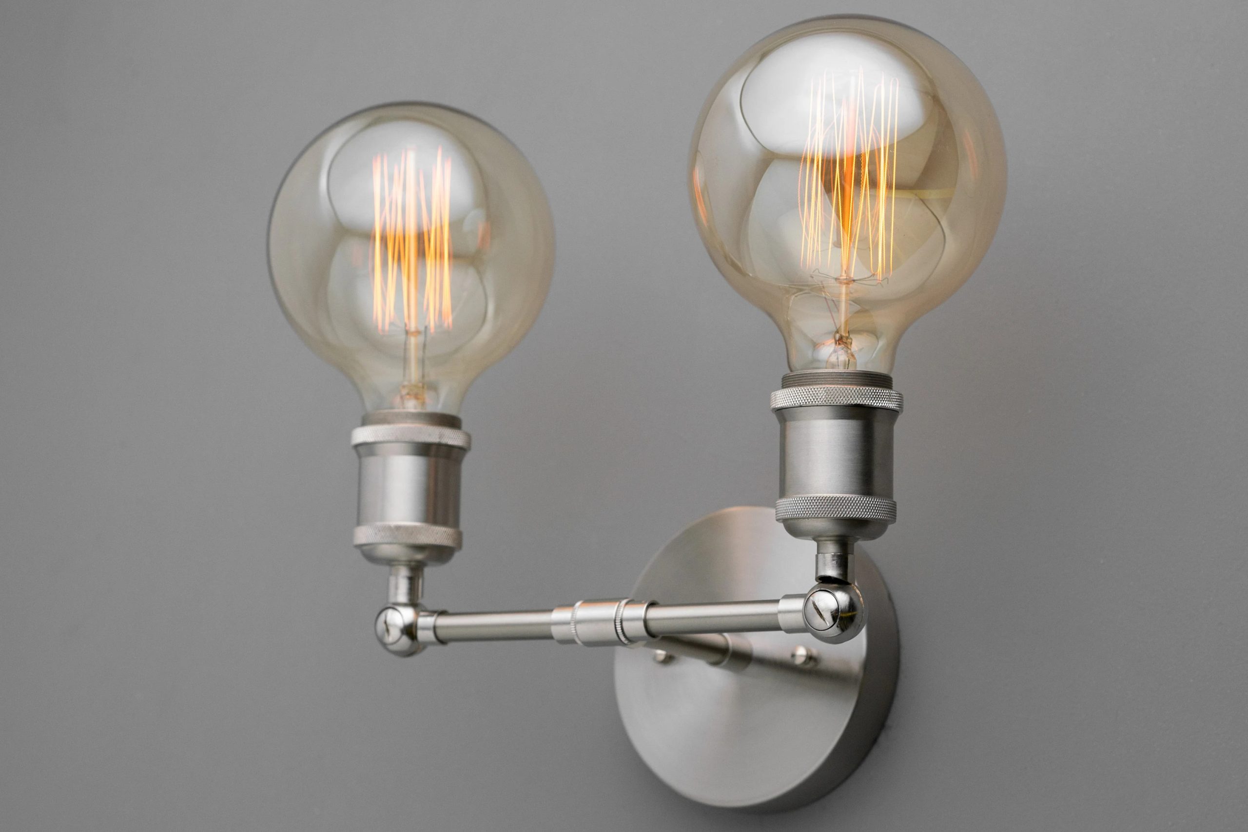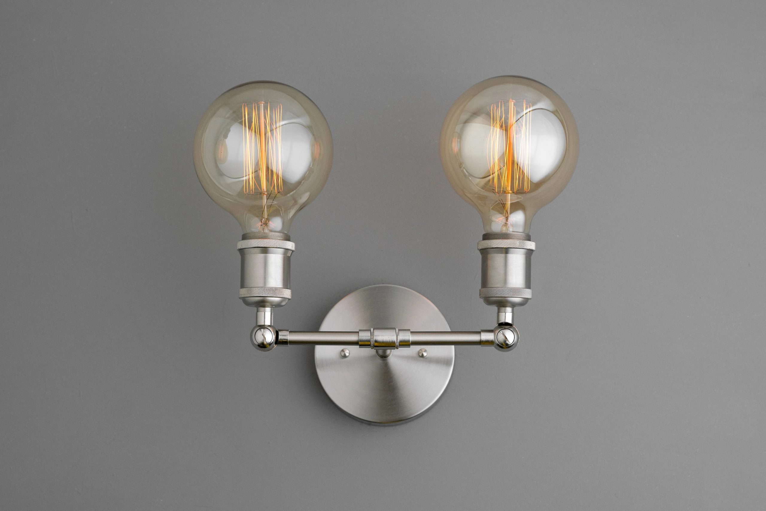 Balanced Dual Beams: Two exposed bulbs on a horizontal pole provide bright, even illumination, perfect for vanities and beside mirrors.